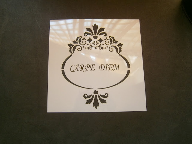 Esta plantilla la he utilizado en la lámpara y en el mueble....encendí la luz para ver donde habia penetrado más la pintura y donde tenía que insistir un pelin más....En los estantes del mueble lo lógico hubiera sido poner la parte recta del stencil pegado al borde del mueble, pero pensé poner el copete, digamos que al revés, para que el dibujo hiciera una especie de onda...